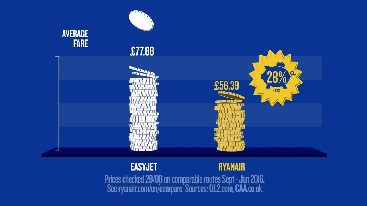 "Ryanair is claiming a first for the airline industry with a price comparison campaign which sees it pit its fares and experience against rivals EasyJet and British Airways in the UK." - The Drum